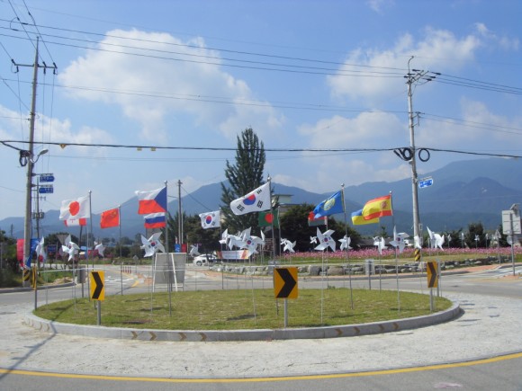 바람개비 태극기는 위천면 사마로터리와 장기로터리에 200개를 설치하여 지역주민들에게 호응을 얻고 있으며, 특히 사마로터리에는 위천면 꽃동산 조성사업으로 심은 코스모스가 만발해 있고, 거창국제연극제와 관련한 만국기와 어우러져 아름다운 풍경을 만들고 있다.