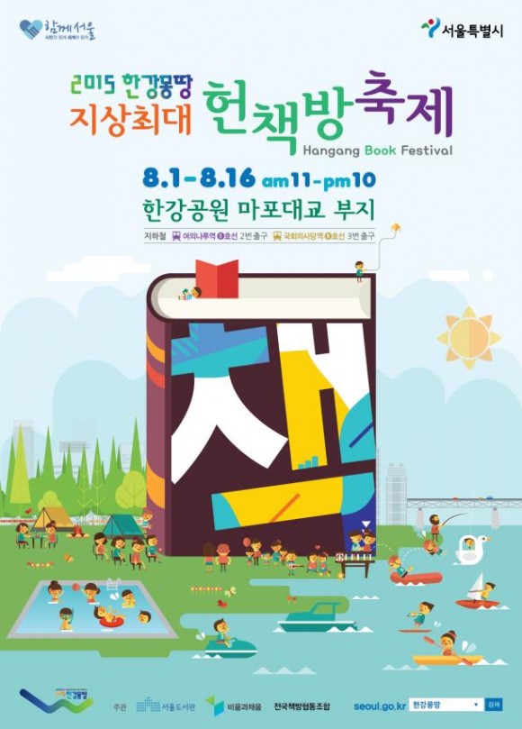 서울도서관은 2015 한강몽땅 지상최대 헌책방 축제 의 한 행사로, ‘한 평 시민 책시장’을 8월 11일(화)~16일(일) 매일 오전 11시부터 오후 10시까지 여의도한강공원 마포대교 부지에서 연다.