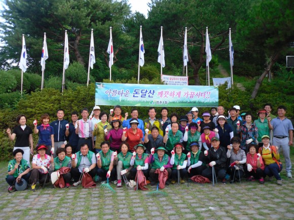 이날 행사에는 무더운 날씨에도 불구하고 참석한 통장자치회, 개발자문위원회와 새마을협의회를 비롯한 7개 단체 150여명은 등산로의 낙엽제거와 쓰레기를 수거하고, 바르게살기위원회 회원들은 세계군인체육대회 환영분위기 조성을 위한 공평삼거리 연도변 제초작업 및 꽃길을 만들었다.