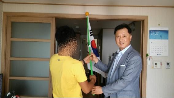 |  | | | ⓒ (주)영남도민일보 | | 구미경찰서(서장 이준식)은 2015. 8. 13.(목) 관내 북한이탈주민들에게 가정용 태극기 100매를 배부하였다.