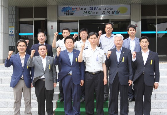 이어 포항 남·북부경찰서와 해양경비안전서를 잇달아 방문한 이칠구 의장 등 일행은 을지연습뿐만 아니라 ‘성폭력, 학교폭력, 가정폭력, 불량식품’ 등 ‘4대악’ 근절과 범죄로부터 안전한 포항시 만들기에 노고가 많은 경찰과 최근 적조피해로부터 포항 앞바다를 지키기 위해 많은 지원을 하고 있으며 해양 경비와 안전을 책임지고 있는 해양경찰의 노고를 격려했다.