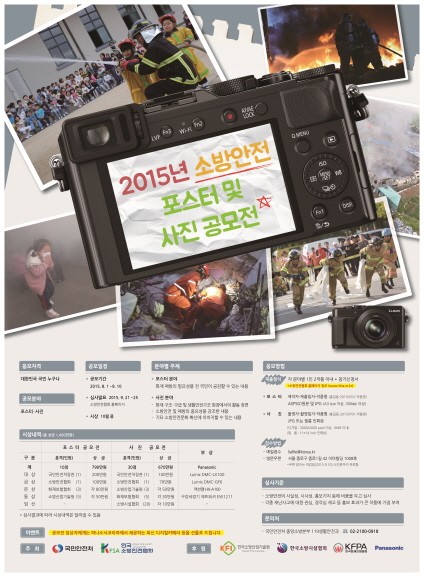 공모 작품은 오는 9월 10일까지 국민안전처 중앙소방본부 119생활안전과(02-2100-0918)로 방문접수나 우편·e-메일(liafile@korea.kr)로 제출하면 하면 되고, 입상자에게는 결과에 따라 국민안전처장관상과 상금, 부상 등이 지급된다. 수상작은 각종 홍보매체로 활용된다.