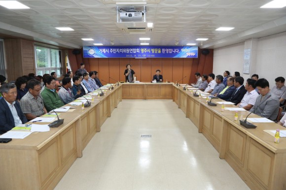 |  | | | ⓒ (주)영남도민일보 | | 거제시 주민자치위원연합회원(회장 임혜숙) 30여명은 2015년 8월 21일 영주시 주민자치연합회(회장 김일동)와 상호 교류 협력과 우호 증진을 위해 영주시를 방문했다.
