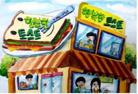 또한, 어린이 우리 동네 예쁜 간판 그리기 부문 대상인 ‘행복한 토스트(선세은 作’)는 우리 동네 예쁜 간판 공모전의 주제와 창의성, 전달성 등이 잘 나타난 작품으로 심사위원들의 호평을 받았다.