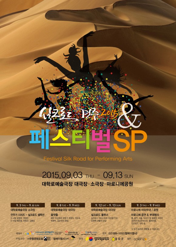 또한 축하공연으로는 웅장하고 경쾌한 50인조 브라스밴드의 공연이 마로니에 공원의 초가을 밤을 수놓아 이날 행사의 백미가 되었다. 3일부터 13일까지 11일 동안 대학로 일대에서 진행되는 ‘실크로드 경주 2015-페스티벌SP’는 가장 실험적이면서 가장 일상에 가까운 것을 위한 노력으로 현대무용과 세계 각국의 타 장르 아티스트들의 협업제작과 더불어 클래식과 팝음악, 영상과 문학, 테크놀로지가 망라되어 인간과 인간, 인류와 역사, 역사와 세계의 미래를 다루는 여러 작품이 소개된다.