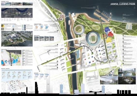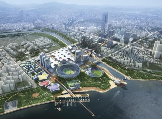 또 다른 우수작「Jamsil Ludens Park」는 탄천으로 분리되어 있는 COEX 지역과 잠실종합운동장을 모노레일로 연결하고, 부지 내의 전시․컨벤션시설, 지하철 환승센터, 각종 체육시설을 거쳐 한강까지 연계하는 등 주변지역과의 연계성이 돋보이는 작품이다.