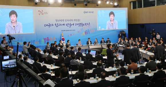 또한 물·에너지·의료 등을 미래 신성장 산업으로 육성하여, 이를 통한 창조경제 혁명으로 경제 재도약을 대구가 열어갈 것이라고 밝혔다. 업무보고에 이어 각계각층의 시민 200여명이 참석한 가운데 ‘청년에게 일자리와 희망을!’ 주제로 청년일자리 창출을 위한 노동개혁과 규제개혁, 창조경제와 문화융성을 통한 청년일자리 창출에 대한 심도 있는 토론을 실시하였다. 토론회 직후에는 지역 주요인사 및 기업인, 시민 등 300여명의 다양한 계층의 사람들이 참석한 가운데 향토음식을 곁들인 오찬 간담회를 갖고 국정에 대한 지역의 적극적인 관심과 협조를 거듭 당부하였다.