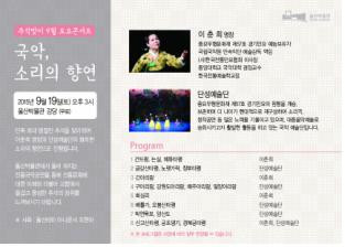 울산박물관(관장 신광섭)은 9월 19일(토) 오후 3시 울산박물관 2층 강당에서 당일 관람객을 대상으로 ‘추석맞이 9월 울산박물관 토요콘서트’를 개최한다고 밝혔다.