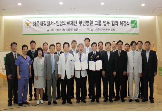 |  | | | ⓒ (주)영남도민일보 | | 해운대경찰서(서장 변항종)와 인당의료재단 부민병원 그룹(병원장 정흥태)는 2015. 9. 14.(월) 11:00경 부민병원 대강당에서 범죄 피해자와 지역 새터민에 대한 의료지원 업무협약(MOU)을 체결하였다.