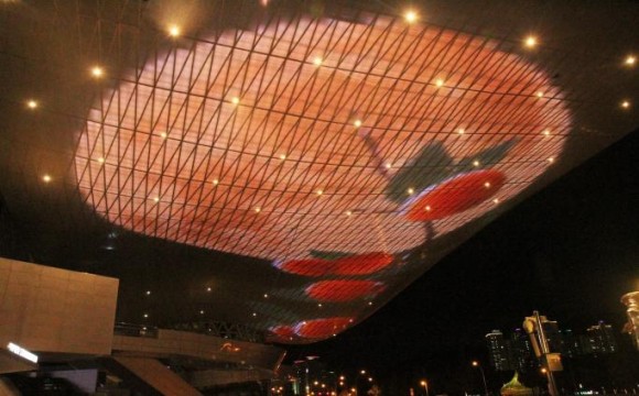 추석연휴 기간에 영화의전당 빅루프에 한가위 영상 LED 경관조명 연출