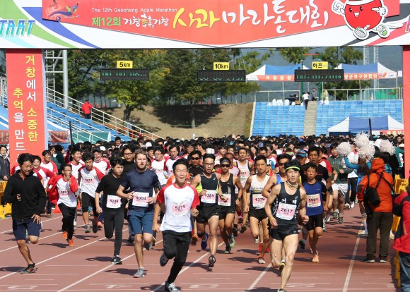 |  | | | ⓒ (주)영남도민일보 | | 거창군 한마당 대축제 마지막 날인 4일 열린 국민마라토너 '이봉주 선수와 함께하는 제12회 거창사과마라톤대회'에 전국적으로 3,200여명이 참여한 가운데 하프, 10km, 5km 코스에서 황금빛으로 물든 가을 들녘을 만끽하며 각자의 기량을 펼쳤다.