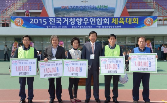 이날 체육대회 식전행사로 진행된 아림1004운동 기부식에서는 (주)호미화방 김경희 대표, 전국향우연합회 윤헌효 부회장, (주)거창금속 정인순 대표(재고양거창향우회장), 재거제거창향우회, 재구미거창향우회, 재창원거창향우회에서 각각 1백만4천원을 아림1004운동 성금으로 기탁했다.