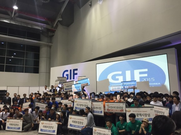 오디션은 스타트업 디벨롭(창업 2년이내), 스타트업 점프(창업 7년 이내), 소셜 임팩트 총 3개 분야로 나뉘어 개최됐다. 이번 GIF 2015경진대회의 꽃이라고 할 수 있는 해커톤에서는 웨어러블 분야에 프리젠테이너팀, 헬스케어 분야에 공룡이빨팀, 빅데이터 분야에 나홀로팀, IoT분야에 재난대책본부팀 총 4팀이 미래창조과학부 장관상(1,500만원)의 영예를 안았다.