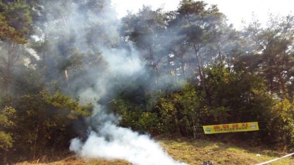 휴대용 연막방제기를 이용한 방제작업은 휴대 및 이동이 간편하고 분사된 연막이 소나무 구석구석에 액제를 도포하여 약제침투 효과가 높아 적은 인력으로도 효율적인 방제가 가능하며, 연막용 살충제에 물과 식물성바이오디젤이 포함된 친환경 확산제를 적정 비율로 희석해 방제지역에 살포하는 것이다.