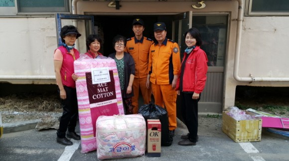 이번에 방문은 피해주민의 경제난을 조금이나마 해소시키고자 침구류, 소화기 등을 전달하고, 피해주민에게 안전교육 및 응급상활 발생 시 행동요령 지도를 실시했다.