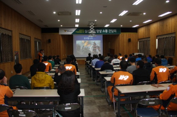 이날 교육은 과다직무, 재난현장 및 각종 사건ㆍ사고 등 스트레스에 쉽게 노출되는 소방공무원의 심신건강 향상을 위해 새희망병원 정신건강의학과 이영민 과장을 초대해 소방공무원 심신건강관리 방법과 PTSD 해소 및 예방법, 자살예방을 위한 정신건강 교육 등의 내용으로 진행됐다.