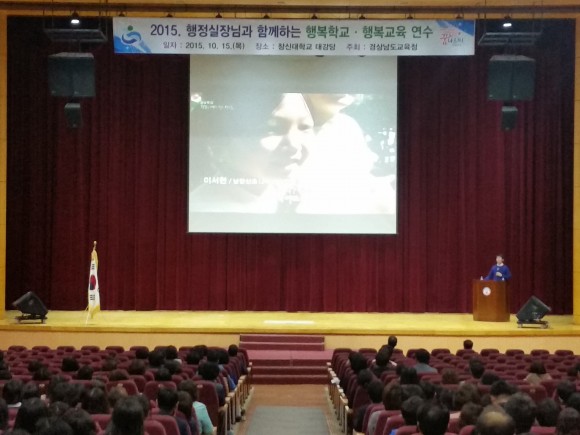 |  | | | ⓒ (주)영남도민일보 | | 경남교육청(교육감 박종훈)은 15~16일 이틀간 창신대학교 대강당과 경남교육연수원 홍익관에서 도내 전 행정실장과 직속기관, 교육지원청 6급 담당 1,200명을 대상으로 2015. 행정실장과 함께하는 행복학교ㆍ행복교육 연수를 시행한다. 이번 연수는 행복학교 및 행복교육 활성화를 위한 행정실장 역량 강화 및 행복학교 운영 사례 및 운영 현황 공유를 통해 행복학교의 성공적 운영 방안을 모색하기 위해 시행된다.
