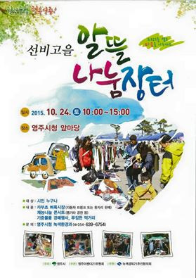 한편, 영주시에서는 자녀들과 가족단위의 많은 시민이 참여하시면 과소비를 줄이고 절약하는 생활습관, 버려지는 물건이 꼭 필요한 사람에게 다시 쓰여 지는 녹색실천과 나눔의 알뜰장터에 소중한 시간이 될 것이라고 말했다.