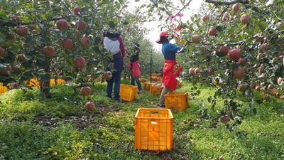 이날 오전 10시부터 시작된 사과 수확 작업은 금년 6월 우박피해와 가뭄으로 사과 작황이 좋지 않고, 허리가 좋지 않은 장애 가 있는 농가를 찾았다. 배점2리 김진환 이장은 “바쁜 업무에도 직원들이 찾아와 적기에 사과 수확을 도와줘서 고맙다”며 일손돕기에 나선 직원들에게 고마움을 전했다.