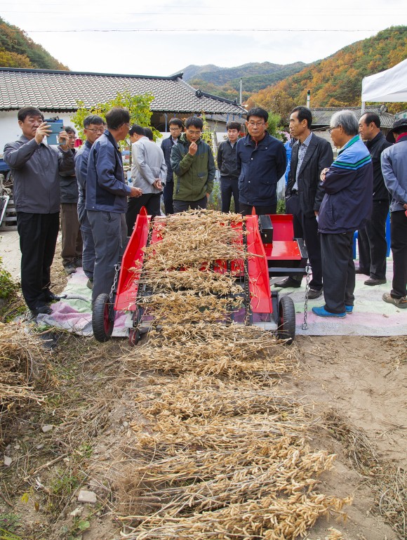 현재 기계가격이 비싸서 개인 농가에서는구입하기가 곤란한 단점이 있지만 작목반을 중심으로 공동 사용을 하고 정부의 지원이 이뤄진다면 앞으로 콩 대규모재배도 가능할 것으로 기대된다. (문의전화 : 남선면 구미리 김종길 010-3376-4444)
