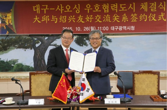 2004년 11월 경제․관광에 관한 합의서를 체결했으나, 최근 교류에 활기를 띄기 시작한 양 시는 10월 26일(월) 11시 시청 2층 상황실에서 대구-샤오싱 우호협력도시 협정서를 체결한다.