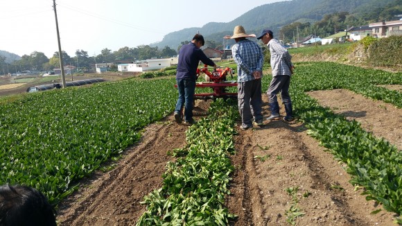 시금치 수확기 기계화 시연회 개최