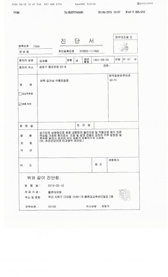 보험설계사인 A씨가 간호조무사인 B씨(사하구 소재 ○○○ 의원 근무)에게 가입고객의 인적사항, 병명 등을 카카오톡을 통해 보내주면, B씨가 임의로 의사의 ID를 도용, 전자차트프로그램에 접속하여 ○○의원 명의의 허위 진단서, 입·퇴원확인서, 진료영수증 등을 작성, A씨에게 보내주었고, A씨는 B씨로부터 받은 위조된 진단서 등을 21개 보험회사에 제출함으로써, 보험가입자들이 1억 1천만 원 상당의 보험금을 편취하도록 하였다.
