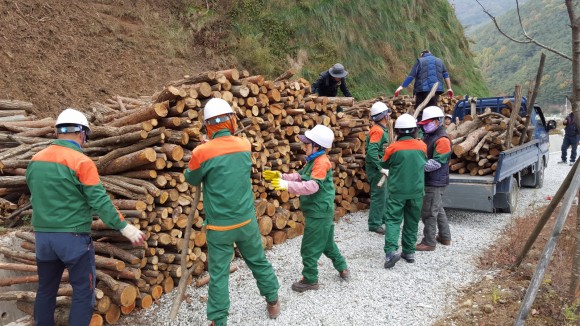 올해는 웅양면 신촌리, 가북면 박암리 일원 군유림에서 시행한 숲 가꾸기 사업의 부산물을 수집하여 취약계층 70세대에 약350㎡(1톤 트럭 70대분)에 달하는 땔감을 전달했다.