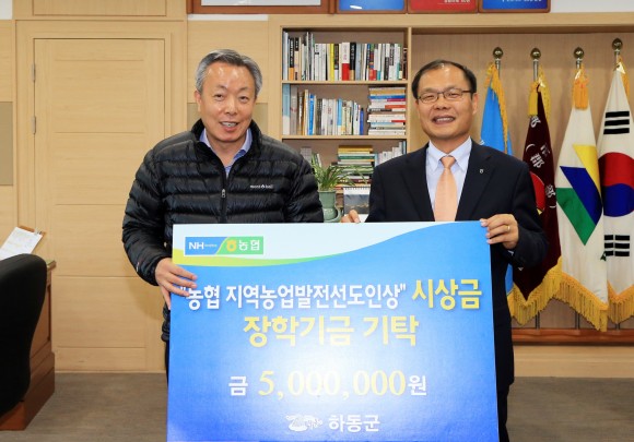 하동장학재단, 윤상기 군수 농업선도인상 시상금 500만…에코맘이유식 500만원 기탁