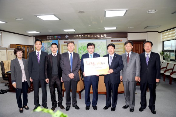 12일 권영세 안동시장과 SK케미칼 이홍균 안동 공장장이 참석한 가운데 사랑의 쌀 전달식 을 개최하고 향후 공고한 협력관계를 유지해 나갈 것을 약속했다.