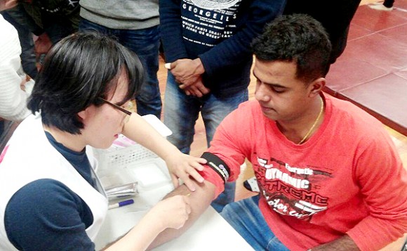|  | | | ⓒ (주)영남도민일보 | | [영남도민일보] 최교열 기자 = 주한 외국인을 대상으로 무료 건강검진과 외국인 간 친목의 기회를 제공하는 제4회 찾아가는 건강닥터가 15일 오후 6시 신천지 부산교회 자원봉사단 다문화센터에서 열렸다.