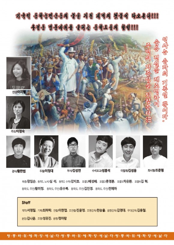이번 창작연극은 영해 동학혁명 이야기를 연극화한 것으로 창수면에 위치한 형제봉의 병풍바위를 주 무대로 이야기가 꾸며지며, 온 가족이 함께 관람하기 좋은 작품으로 영덕의 지역문화를 바로 알고 바로 알리는 좋은 계기가 될 것으로 보인다.