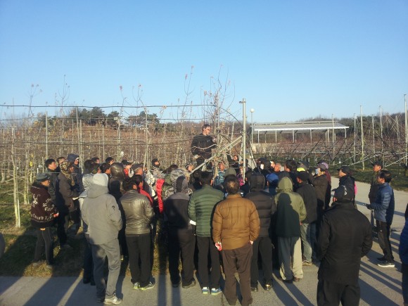 정지전정교육은 올해 사과수확 후 내년도 사과농사를 준비하는 첫번째 준비과정으로 사과농업인들에게는 관심이 높은 교육이다. 정지전정은 동계전정과 하계전정으로 구분되는데 동계전정에서 70%이상 전정작업이 이루어지기 때문이다.
