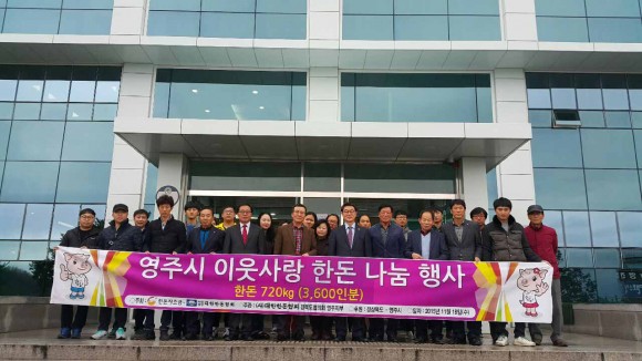 한돈협회 영주시지부 권현의 지부장은 “농산물 개방과 사료 등 원가상승으로 축산농가들이 어려움을 격고 있지만, 매년 사회복지시설 등 소외계층에게 고기를 지원해 오고 있으며, 이들에게 위안을 되었으면 한다”라고 전했다.