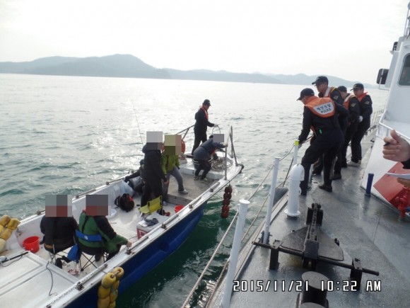 낚시객 3명을 태운 P-75정은 10:40경 모항항에 입항하여 안전계도 후 귀가 조치하였다.