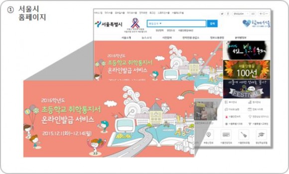 취학통지서 온라인발급 서비스는 서울시가 전국에서 유일하게 2011년부터 시행하고 있는 제도로, 시민의 만족도와 행정기관의 효율성을 동시에 높인 것이다. 즉, 그 동안 동주민센터 직원이나 통장이 초등학교 입학 대상 가정을 직접 방문하여 ‘취학통지서’를 전달하던 것을 보호자가 가정 또는 회사에서 서울시 홈페이지에서 직접 발급받을 수 있도록 개선했다.
