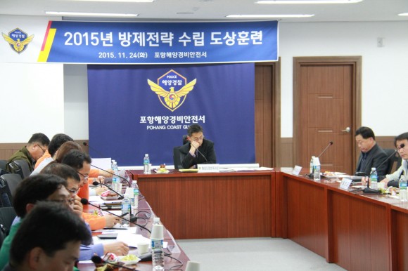 |  | | | ⓒ (주)영남도민일보 | | [영남도민일보] 홍인환 기자 = 포항해양경비안전서(서장 김인창)는 11. 24(화) 포항 관내 대규모 기름 유출사고 대비 해역별 특성에 적합한 방제전략 수립을 위한 2015년 방제전략 수립 도상훈련』을 관계기관 합동으로 포항해양경비안전서 2층 대회의실에서 실시 했다.