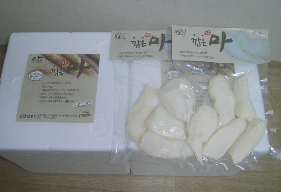 현대인들의 건강기능식품으로 소비가 증가해 생식용으로 유통량이 늘어남에 따라 소비의 편리성을 위해 현재 유통포장단위가 10㎏으로 운반 과정의 불편함과 음용 시 거쳐야 할 조리과정의 시간적 위생적 편리성을 개선해 “마”를 박피해 표피의 변색을 방지하기 위해 소금물에 담근 후 맑은 물로 헹구어 200g 진공 포장해 소비자들에게 유통 공급함으로써 음용의 편리성을 확립했다.