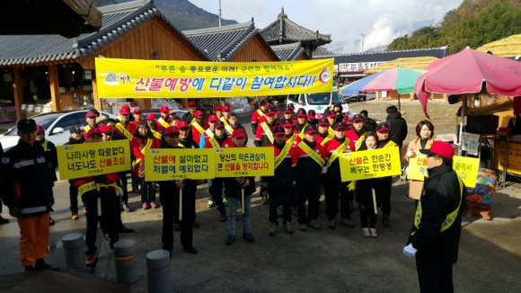 또한 산불예방 홍보용 로고송을 활용해 마을방송과 차량 가두방송을 실시하는 한편 등산로 입구 등지에서 쓰레기 수거 등 자연보호 활동도 병행했다.