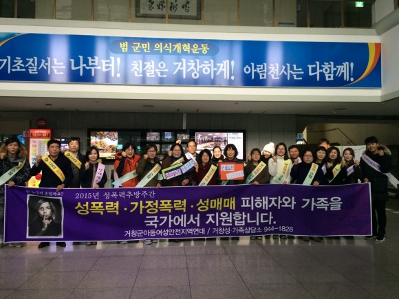 우리나라는 2011년부터 11월 25일∼12월 1일까지를 성폭력 추방주간으로 지정하여 운영하고 있는데, 올해는 성폭력, 가정폭력, 성매매 등을 추방하는 지역사회 환경을 조성하고자 거창군 아동·여성안전지역연대가 주최하고 거창 성·가족상담소가 주관하여 캠페인 행사를 추진하였다.
