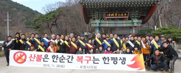 |  | | | ⓒ (주)영남도민일보 | | [영남도민일보] 정문용 기자 = 포항시의회(의장 이칠구)는 28일 오전 송라면 내연산일원에서 산불예방 캠페인을 실시했다.