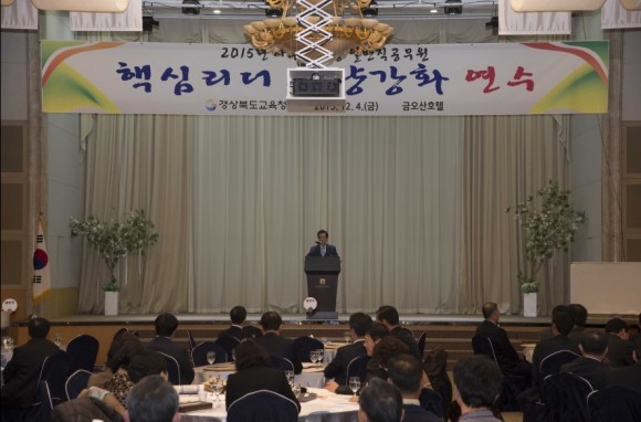 |  | | | ⓒ (주)영남도민일보 | | [영남도민일보] 권기한 기자 = 경상북도교육청(교육감 이영우)는 12월 4일(금) 구미 금오산호텔에서“2015년 사무관 이상 일반직공무원 핵심리더 역량강화 연수”를 실시했다.