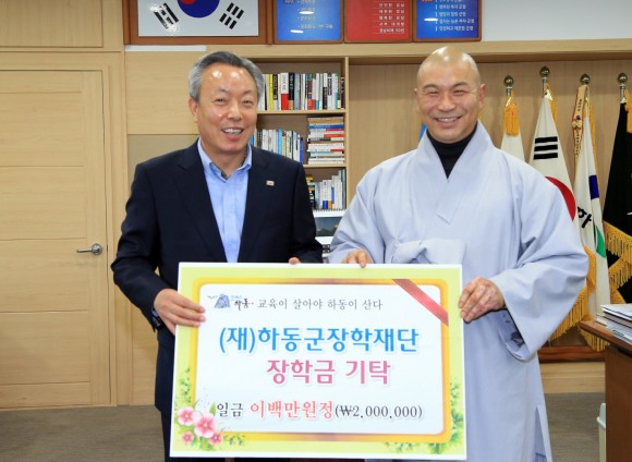 또 밀양시에 소재한 ㈜리더스컨트리클럽(대표 김현상)은 고향 양보면과 하동지역 후배들에게 보탬이 되길 바란다는 뜻을 전하며 1000만원을 기탁하기로 약속했다.