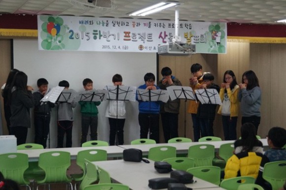 |  | | | ⓒ (주)영남도민일보 | | [영남도민일보] 권기한 기자 = 이산초등학교(교장 김필수)는 2015년 12월 4일(금) 종합학습실에서 전교생 76명이 참여한 가운데 ‘2015학년도 하반기 프로젝트 산출물 발표회’를 실시하였다.