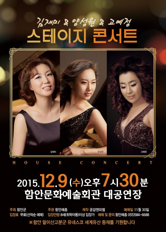 - 함안문화예술회관서 ‘김재미&양성원&고예정 스테이지 콘서트’ 열려