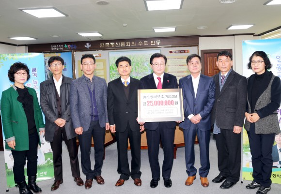 12월 7일 ㈜대양건설환경․㈜대흥환경산업․대성골재㈜․웅부환경㈜․동성이엔티 등 5개 지역업체가 열악한 환경에서 공부하고 있는 학생들에게 조금이라도 도움이 되었으면 하는 마음으로 2,500만원을 장학금 기부에 동참했다.