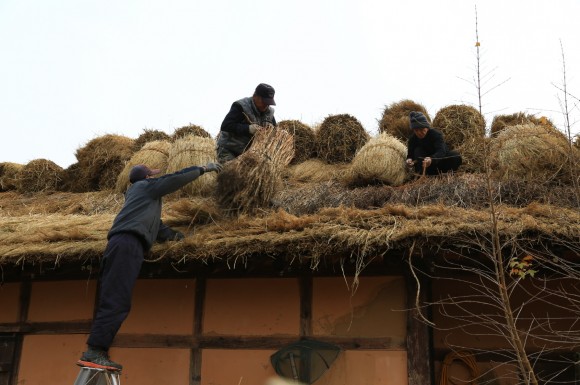 |  | | | ⓒ (주)영남도민일보 | | [영남도민일보] 오흥조 기자 = 8일 경남 의령군 화정면 상정리 조씨 고가에서 초가 이엉 잇기 작업이 한창이다.