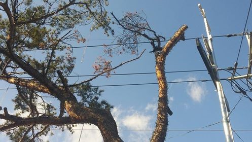 영주시 구성오거리에 식재된 고송나무에 크리스마스트리를 치장해놓아 고송이 고사되어가고 있다.