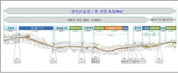 2012년 4월 개장한 1단계 대흥동 구간(760m)과 2015년 6월 개방한 2단계 연남동(1,268m), 새창고개(630m), 염리동(150m) 등 이미 조성된 네 구간에 조형물이 시민참여로 채워지게 된다. 오는 2016년 5월에 6.3km ‘경의선숲길’ 전 구간이 개방된다.