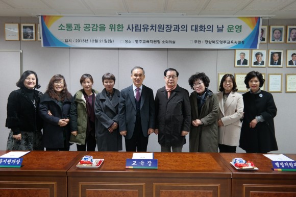 이 날 대화 주제는 유아교육의 강화에 따른 교육정책의 변화에 따른 현장에 대한 이해와 공감대를 형성하는 의미 있는 시간이었다. 특히 사립유치원의 운영 전반과 현장의 문제점 파악 및 유치원장과의 대화로 사립유치원도 교육가족으로서의 소중함을 일깨워주는 계기가 되었다 이성호 교육장과 사립유치원장 모두 지속적인 교류를 통해 서로 소통하고 협력하여 행복한 유아교육 환경을 조성하여 영주 유아교육 발전을 위해 함께 힘을 모으기로 다짐 하였다.